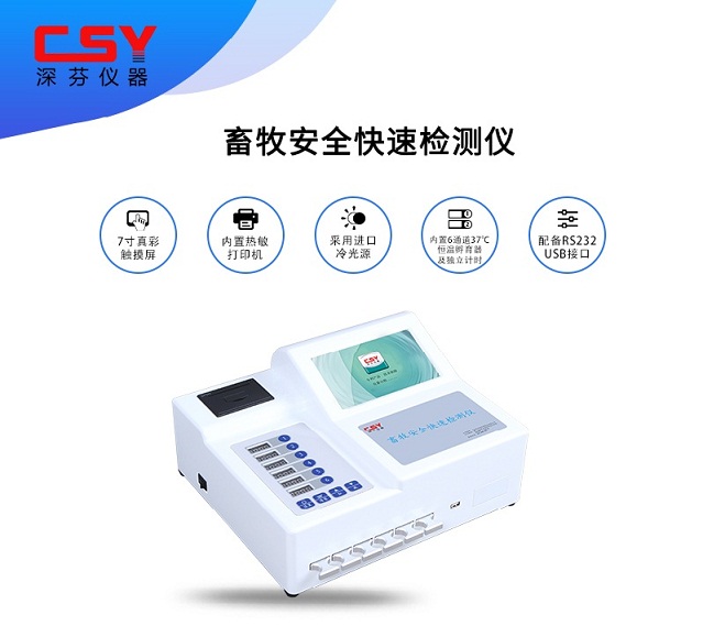 獸藥殘留快速檢測儀采用固相酶聯免疫吸附ELISA的原理,即酶聯免疫法;獸藥殘留快速檢測儀可定量快速檢測阿莫西林、孔雀石綠、磺胺類、黃曲霉毒素(B1,B2,G1,G2 M1 M2 )、疾病診斷、三聚氰胺檢測、恩諾沙星、環丙沙星、 紅霉素、氯霉素、土霉素、四環素、 磺胺類(總量)、喹乙醇、已烯雌酚等有毒有害物質及抗生素殘留檢測。并且可以連接食品安全監控系統。 獸藥殘留快速檢測儀廣泛應用于養殖場、屠宰場、肉產品深加工企業、檢驗檢疫單位使用。