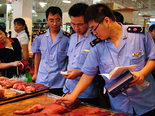 隨后,記者向食藥監(jiān)部門反映此事,當(dāng)日14時許,海口市瓊山區(qū)中山食品藥品監(jiān)督管理所執(zhí)法人員趕到現(xiàn)場。執(zhí)法人員用手摸了摸攤位上的牛肉,并沒有立即做出判斷。“是不是注水牛肉,通常可以用手摸,看看黏不黏手,但這不能作為執(zhí)法的依據(jù)。”執(zhí)法人員隨即聯(lián)系了瓊山區(qū)食品藥品監(jiān)督管理局有關(guān)負責(zé)人,詢問是否可以用食品快檢車檢測注水肉,得到的答復(fù)是“暫時不可以”。該執(zhí)法人員稱,目前海口食藥監(jiān)部門正計劃引進一種可以快速檢測注水肉的儀器CSY-R肉類水分測定儀,待儀器配備到位后,他們將對培龍市場的所有鮮肉攤進行檢測,排除隱患。